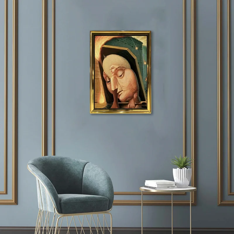 • ابعاد قاب: 77 در 57 سانتی متر (برای سایز 70 در 50) 109 در 79 سانتی متر (برای سایز 100 در 70) 155 در 115 سانتی متر (برای سایز 140 در 100)